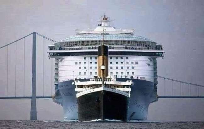 ▼與現代郵輪相比,鐵達尼號並不算大。