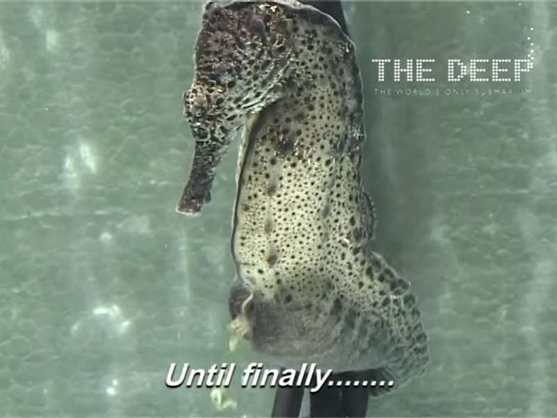 2018年04月18日海馬在動物界一直是被稱頌的模範父親之一,不但因為海馬是實行終生一夫一妻制,而且雄海馬還要負起孵育及生小孩的重責大任,雌海馬將卵產在雄海馬的育兒囊後,經過兩到三週,雄海馬就會將小海馬生產出來。英國的帝普水族館(The Deep's submarium)之前拍下了公海馬生產時的影片,看了只能說真的超辛苦!