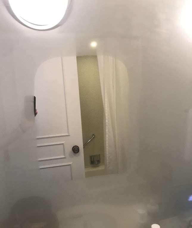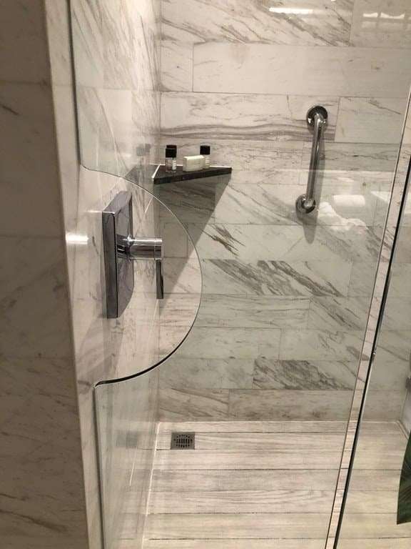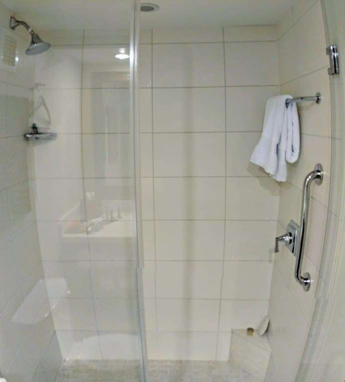 ▼這間飯店的淋浴間門設計非常棒,可以先把手伸進去打開花灑。