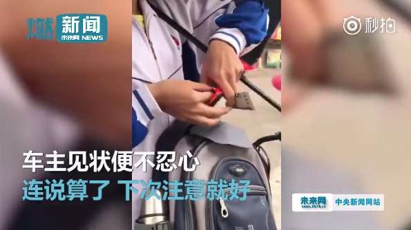 2018年04月20日大陸廣東省廣州市最近發生一起非常「溫馨」的車輛擦撞事件。當時一輛名車被行經的腳踏車刮花,車主一看對方是個學生,詢問他「要賠多少」,但後來看到學生從書包裡的紅包努力掏錢,就大方說:「算了!」