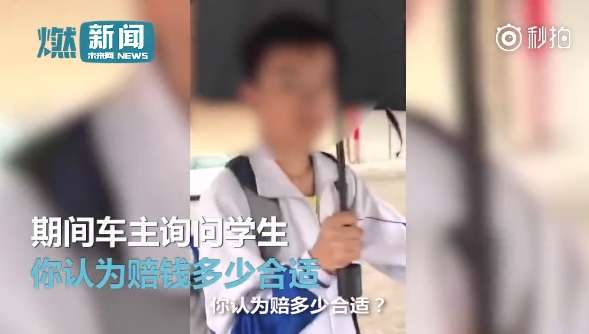 ▼車主看他算是有誠意,就鬆口說:「賠10塊錢(約47元台幣)吧!10塊錢身上有沒有?」學生立刻表示自己身上有10元,努力從書包裡掏出2個紅包袋,想拿錢給車主。