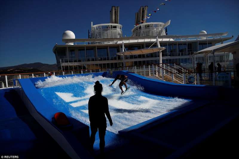 ▼遊輪上有很多娛樂設施,比如模擬衝浪。
