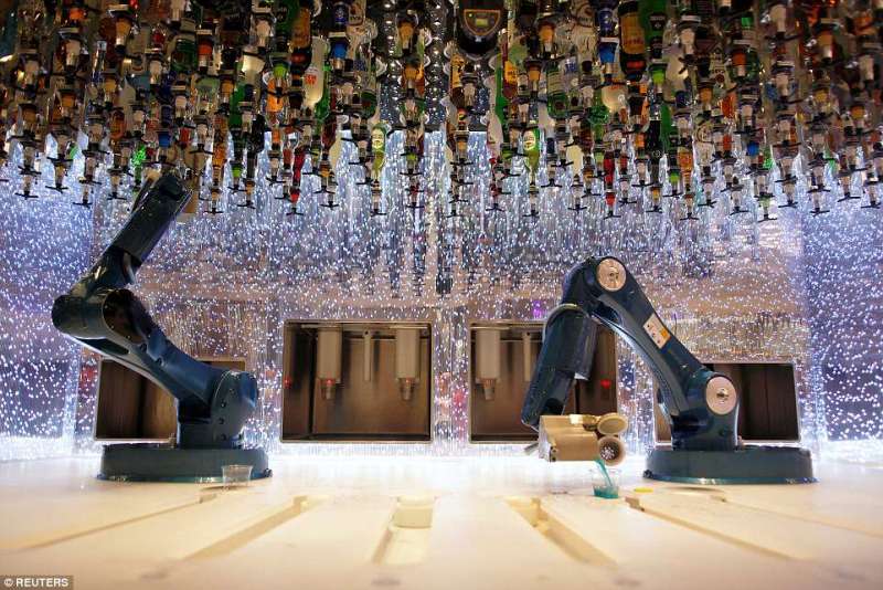 ▼酒吧中的調酒師是機器人。