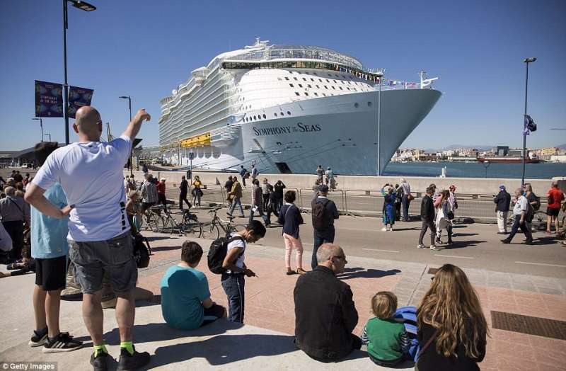 2018年04月20日歐美人很喜歡遊輪遊,一張船票包含交通、住宿、餐飲、各種娛樂費用,性價比超高。最近,全球最大遊輪「海洋交響號」(Symphony of the Seas)準備在地中海展開處女航,與周圍的建築相比,它就像一座壯觀的海上城市。