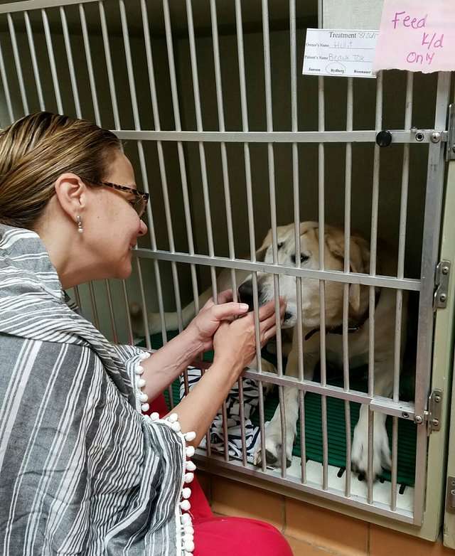 ▼一名志工不忍心,將牠的照片PO到社群網站上,希望好心人能夠領養牠。Jamie Hulit看到照片後,很快就愛上了這隻受盡苦難的狗狗。她專門去看望Beaux Tox,雖然那時候Beaux Tox的狀況很糟糕,她還是將牠帶了回去。