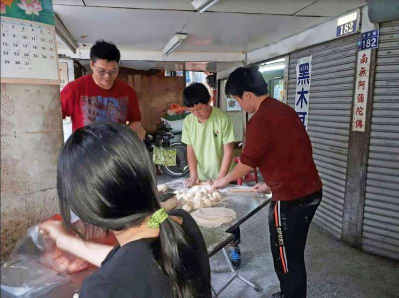▼回想當年她接受丈夫的蔥油餅攤時,靠著丈夫遺留下的台語材料紙條,逐一跟老闆詢問自行翻譯成國語版,加上跟別人請教才終於學會製作蔥油餅。那時小女兒就睡在攤子旁邊的嬰兒床,劉淑雲則在一旁不停的擀麵皮。其他孩子也都很乖巧,會在下課之後來攤子幫忙,減輕她的負擔。