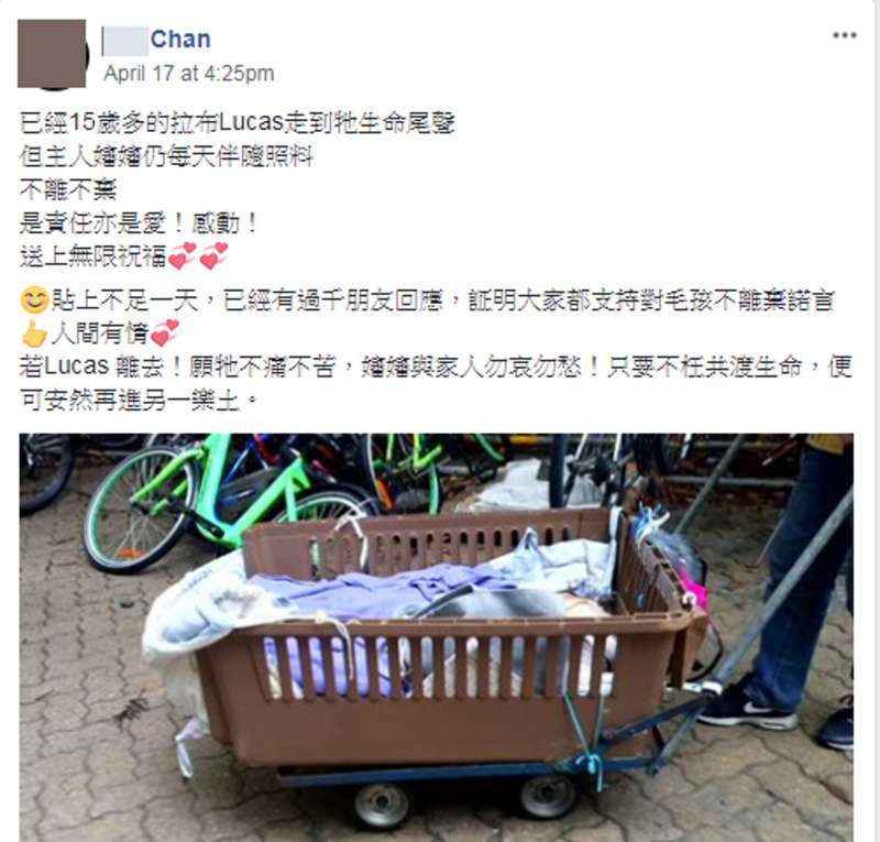 其他網友也都感慨祝福:「嬸嬸同狗狗都要加油」、「能夠與孩子走到盡頭是幸福的,婆婆年紀這麼大,仍然對孩子不離不棄,用心照顧,令人尊敬」、「人狗的真誠相處,一生一世,永不放棄,難得」、「曾有見過她和牠,當時拉拉還沒這麼差的。 姨姨加油!」