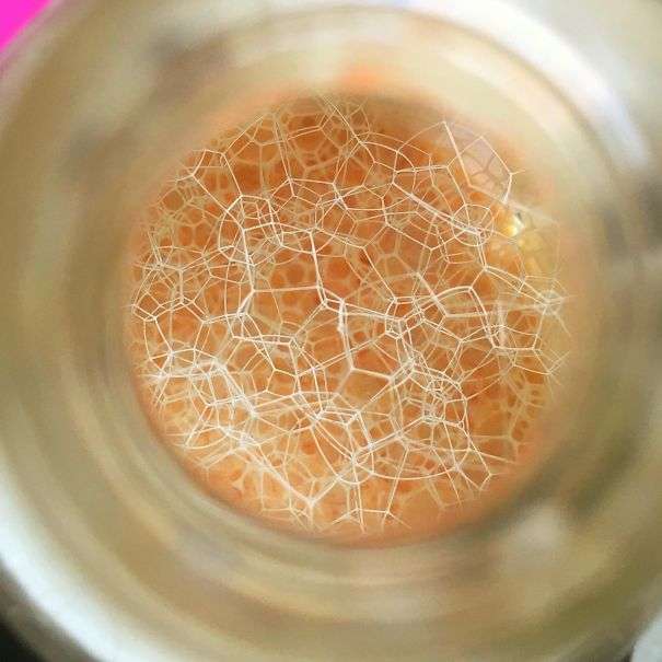 ▼從洗髮精瓶口往裡看,全都是泡沫。
