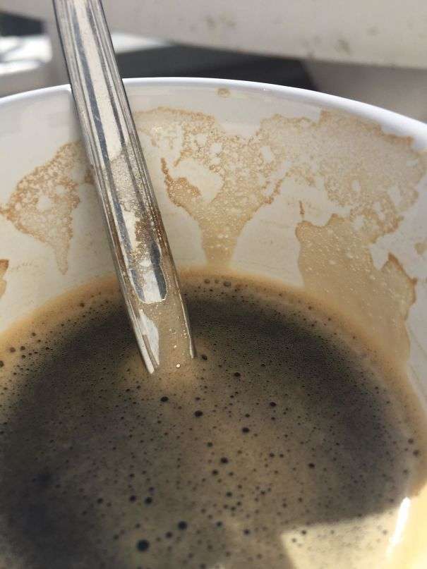 ▼杯壁上的咖啡就像世界地圖。