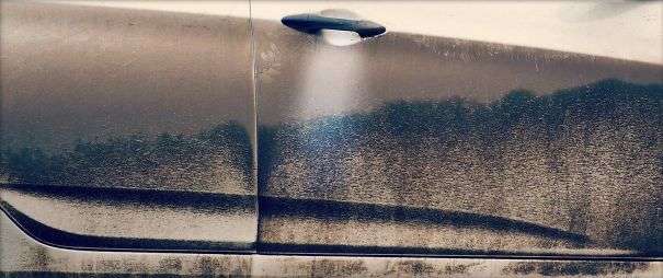 ▼旅行時泥濺在車窗上,意外變成了美麗的風景畫。