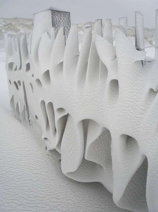 ▼大雪過後,柵欄變成了超現實主義作品。