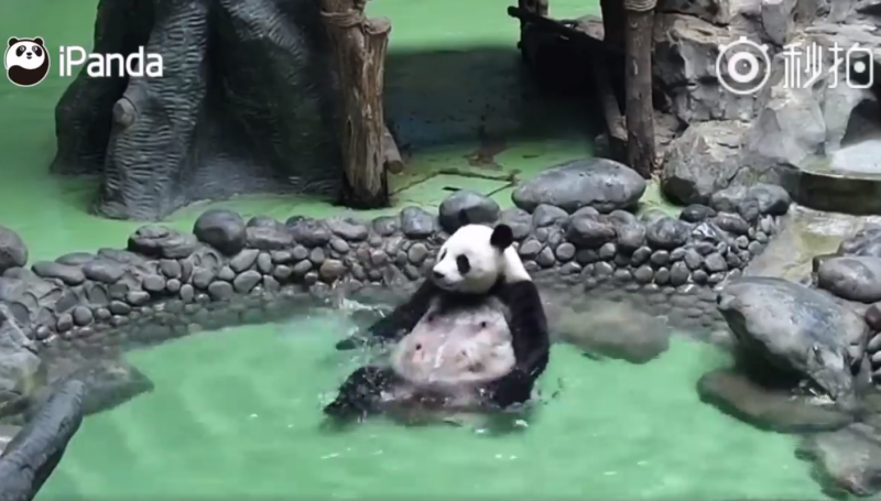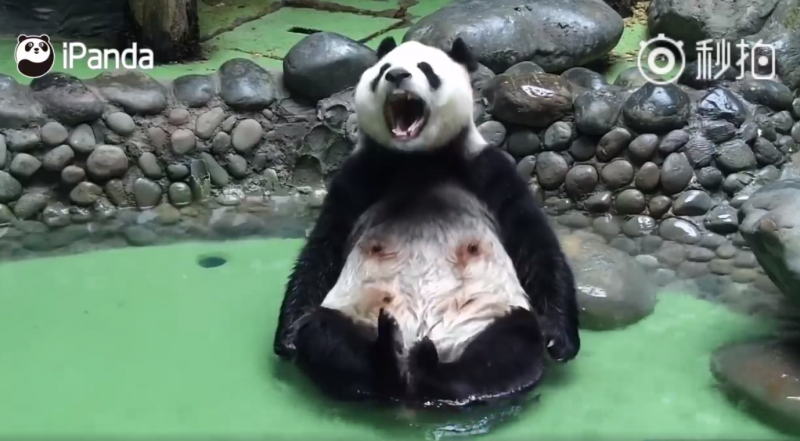 超悠閒在玩水的熊貓日子過太爽 「打哈欠模樣」被拍下秒引起大家瘋傳:好羨慕啊