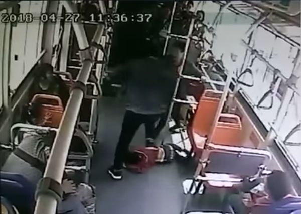 ▼郭男一把將郭心桓抓起來,在地上踩了好幾腳,車上乘客都嚇了一大跳!
