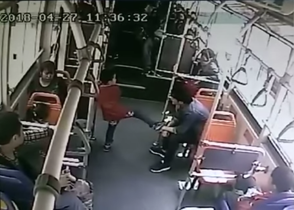 2018年04月30日中國四川遂寧一位7歲男童郭心桓(化名)日前搭公車回家時,疑似刻意踢了車上21歲的郭男幾腳,竟被郭男抓過來過肩摔,又在頭上狠踩了3腳。監視器的影片遭到瘋傳!