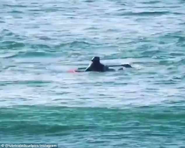 ▼當時Andrew看到了海豚,因為海豚很溫和,所以他沒有防備,繼續划衝浪板,靜靜等著牠們從自己身邊游過。