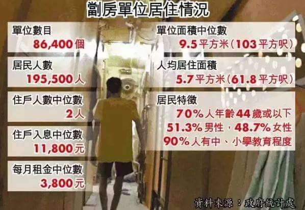 ▼根據香港政府統計,大約有20萬的香港人,居住在這種狹窄的「棺材房」(又稱劏房)內。