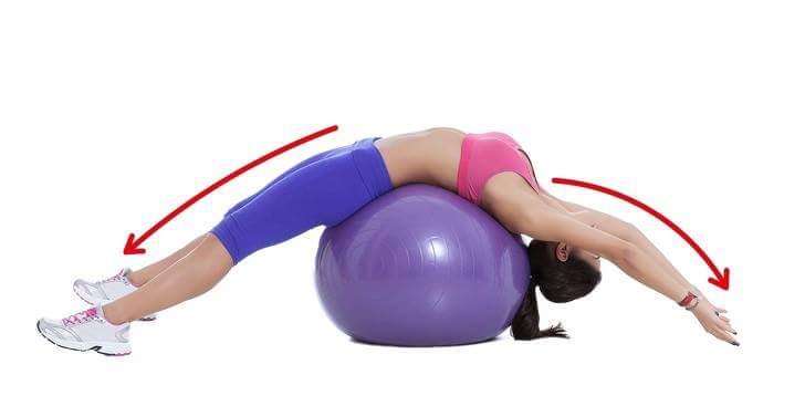首先將背部放在球上,小心的彎曲身體,將手臂和腿部盡量展開,維持20秒。