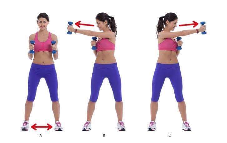首先站立時雙腳比肩膀稍微大一些,膝蓋稍微彎曲,兩隻手臂向上抬起,用拳頭推出左手臂,返回起始位置後推出右手,建議持續進行60秒,重複3次,每次休息20至30秒。