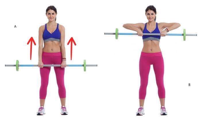 先站好,手握著槓鈴或啞鈴,接著舉起槓鈴直到抵達胸部頂端,然後慢慢降低高度,建議持續60秒,重複3次,每次休息20至30秒。