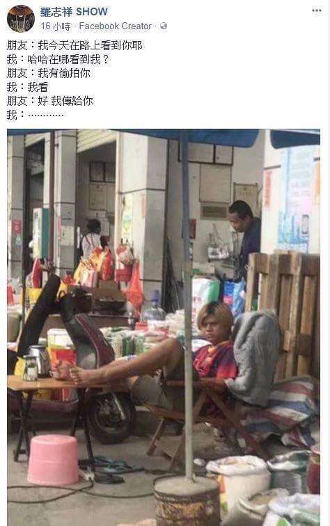 ▼一開始有網友在臉書《爆廢公社二館》分享了這張照片,表示看到羅志祥坐在菜市場的樣子,讓許多網友噴笑不已。