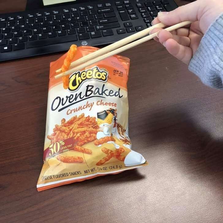 ▼用筷子吃零食,才不會弄髒手,方便工作!