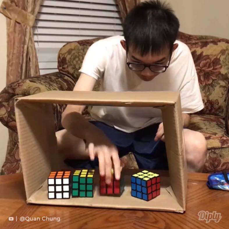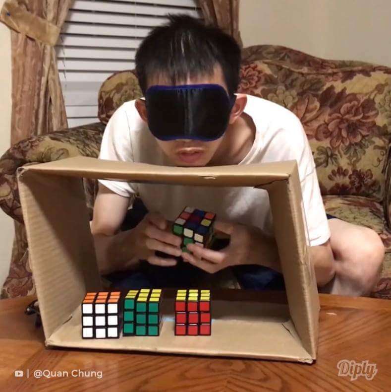 有看中國綜藝節目《最強大腦》的話,一定都會對當中許多選手的魔術方塊技巧所震撼,無論是速擰、盲擰、三四五階的魔術方塊,到了他們手上都好像什麼輕鬆無比的玩具一樣。今天來分享一位越南帥哥Quan Chung的盲擰技術,他在戴上眼罩之後解開了4個魔術方塊,真的非常不簡單。