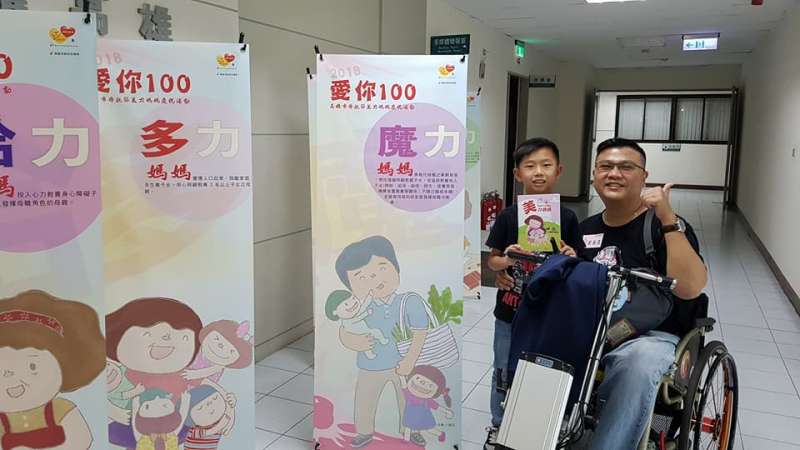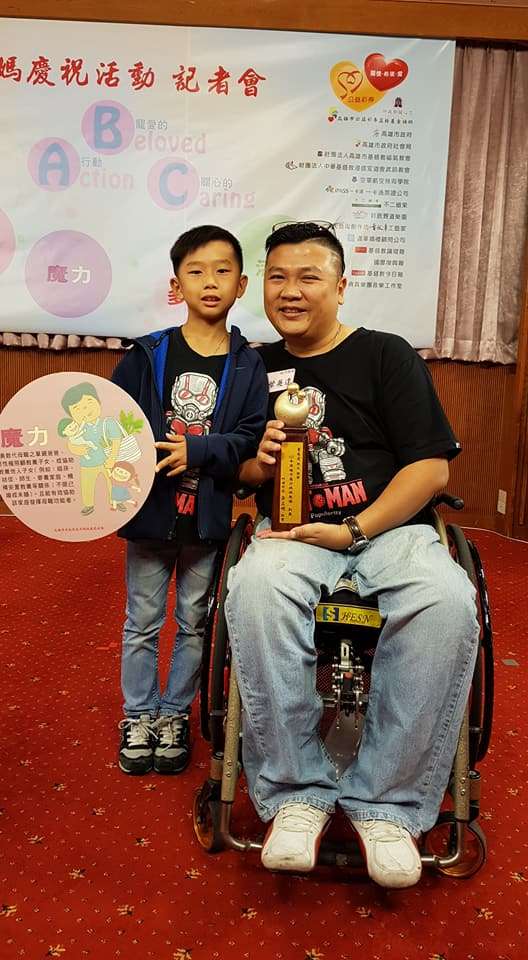 ▼在高雄市政府舉行的母親節媽媽表揚會中,葉展逢是唯一入圍的男性。10年前,他剛升上空軍上尉,本來生活順遂,但同一年他就遭逢車禍,導致胸部以下全癱,還常大小便失禁。