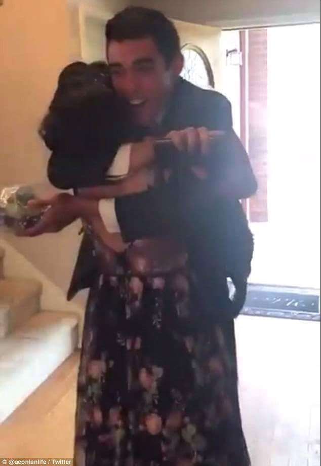 ▼震驚之後的塔里克衝上前給了梅根一個大大的擁抱,真的非常為她感到開心。
