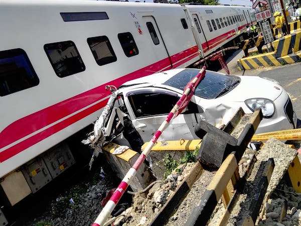 ▼這起事件也造成普悠瑪延誤9分鐘,改由另外一班車次接送旅客。警方也呼籲,平交道從鈴響到放下桿子約有7秒時間,如果卡在中間,應該趕快下車按緊急按鈕,給通過的火車反應時間。