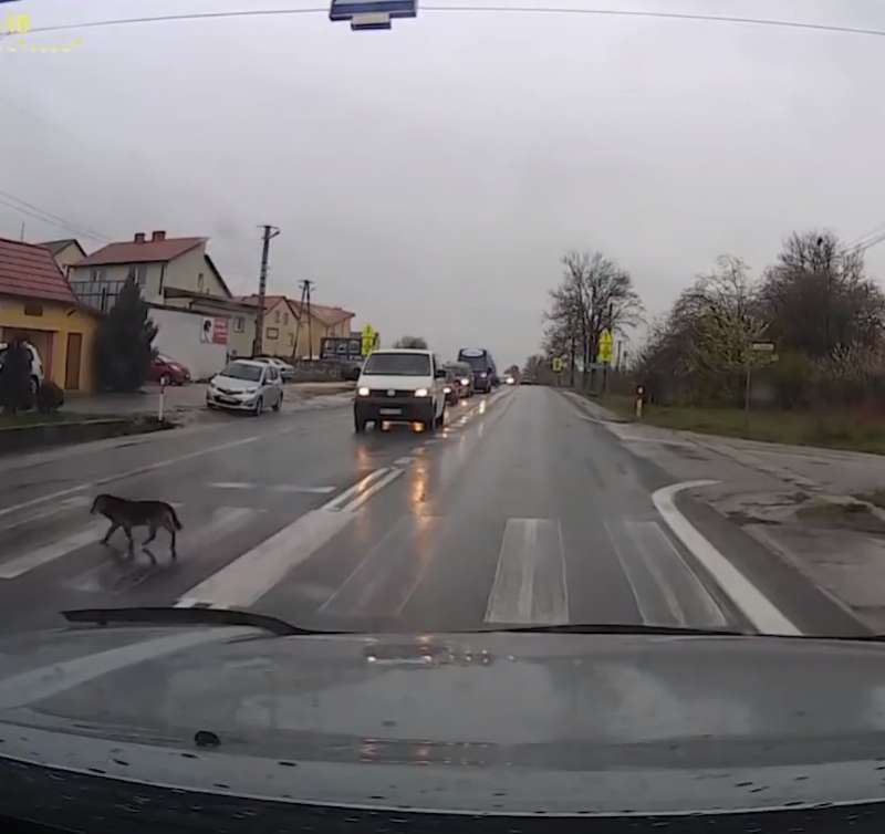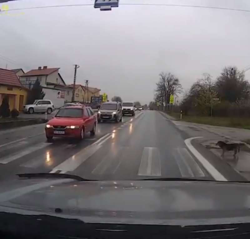 雙向車道為了一隻流浪狗「一起停車」 讓狗狗可以安心過馬路