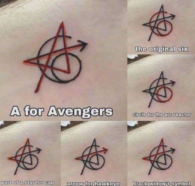 ▼而他們刺下的符號也有著6種不同的意義,包括:復仇者的「A」、原始6人組的「6」、鋼鐵人身上電弧反應器的「圓」、美國隊長部分的「星星」、鷹眼的「箭」和黑寡婦的個人符號。