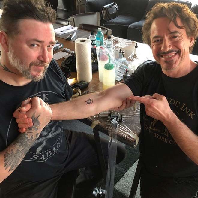 ▼為了紀念《復仇者聯盟3:無限之戰》連續突破影史記錄這個值得慶祝的時刻,「黑寡婦」史嘉蕾喬韓森帶著「鋼鐵人」小勞勃道尼、「鷹眼」傑瑞米雷納等初代復仇者一起將「Avengers」以刺青的方式作為一輩子的回憶。