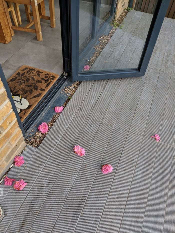 2018年05月09日幾個月前,英國女子Rosie搬到了新社區。不久後,她發現家裡的門廊前出現了一朵朵粉紅色的小花。剛開始Rosie以為這些花是風吹來的,室友卻告訴她,這都是鄰居家的貓咪Willow送來的見面禮。