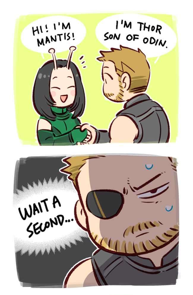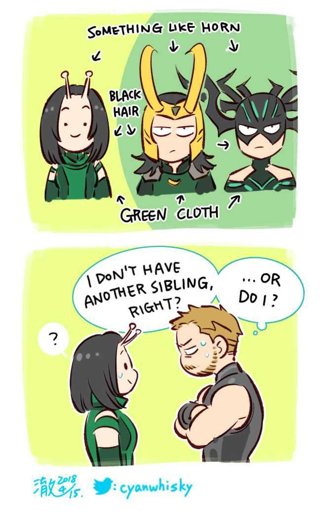 ▼6.「Hi,我是螳螂女!」「我是索爾,奧丁之子。等等……他們有同款黑髮、像角一樣的東西、綠色的衣服……我沒有其他兄弟姊妹了吧?有嗎?」