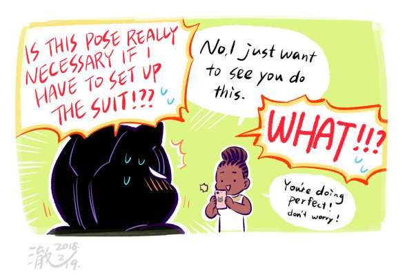 ▼15.「瓦干達力量覺醒!我穿戰衣的時候有必要擺這樣的姿勢嗎?」「沒必要啊,我只是想看你這樣做而已。」「什麼?!!」「你做得很好啦,不用擔心。」