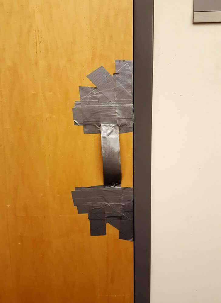▼微波爐手把斷了?用浴室的手把來代替吧。