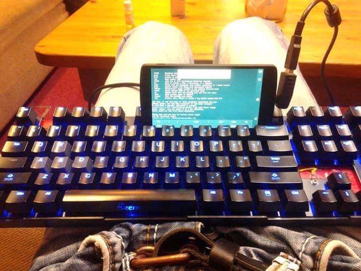 ▼要在手機上打很多字的話,可以將手機連上鍵盤。