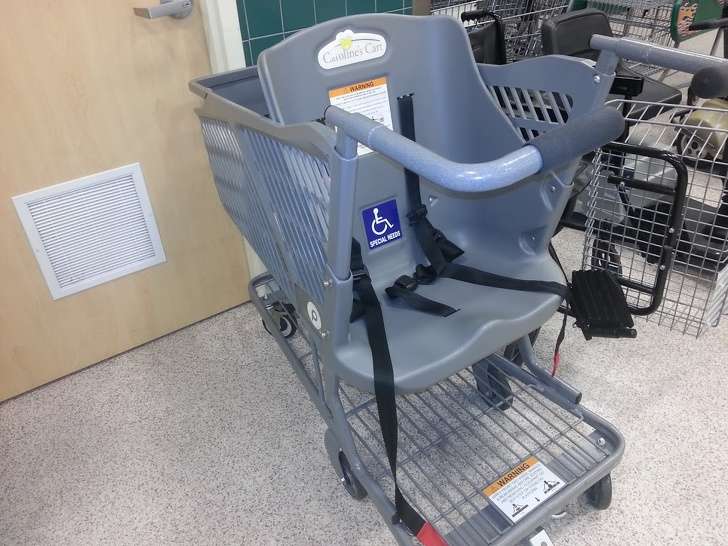 ▼超商的購物車上有嬰兒座椅。