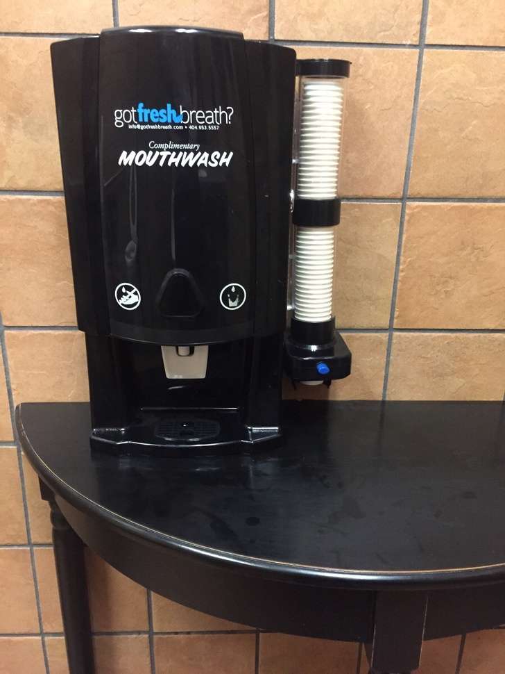 ▼廁所中有漱口水,你不僅可以洗手,還能清潔口腔。