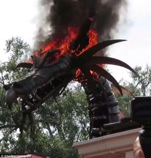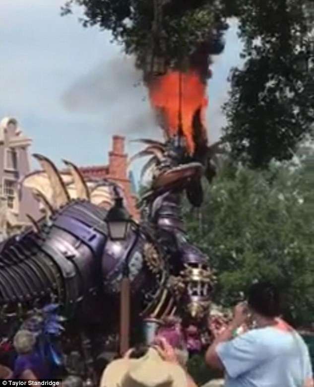失火了! 迪士尼神奇王國噴火龍起火冒黑煙 遊客紛紛走避找掩護