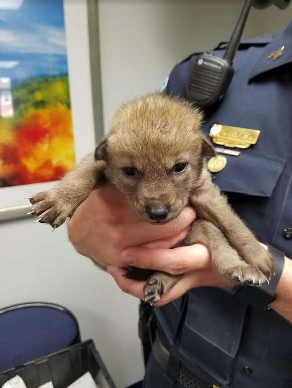 ▼員警Kyle Rybaski將小狗抱起來後,感覺不太對。因為「這隻小狗」的毛硬硬的,爪子也比普通的小狗大一些,牠鋒利的指甲更讓人懷疑。