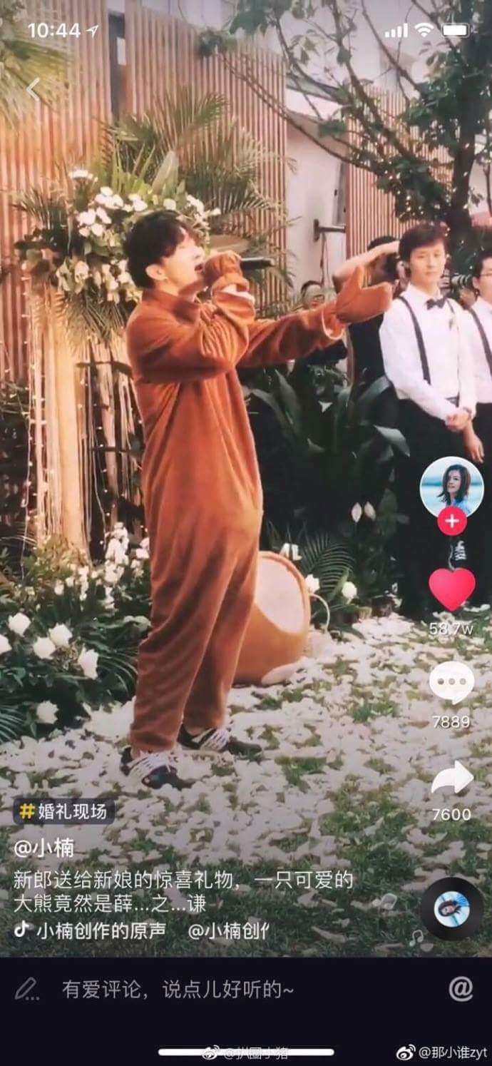 ▼據了解薛之謙之所以會出現在這場婚禮,是因為拍攝《無限歌謠季》的節目。據說新娘也是他的歌迷,這樣的巧合讓許多粉絲羨慕表示:「自己的偶像來參加婚禮真的太幸運了」、「好想讓他也來我的婚禮!」