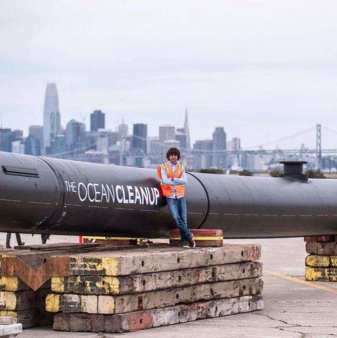 ▼2015年,他宣佈發明了一種稱為「海洋吸塵器」的裝置,能夠清除海洋中的塑膠垃圾。原來他是利用洋流的帶動,在夏威夷和加州之間架設一條長達100公里的設施,攔截太平洋垃圾帶(The Great Pacific Garbage Patch)上的塑膠垃圾。這項設施能夠讓海洋生物和浮游生物安全通過,只有垃圾會被攔截。