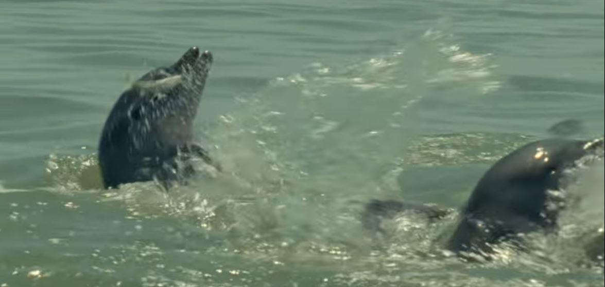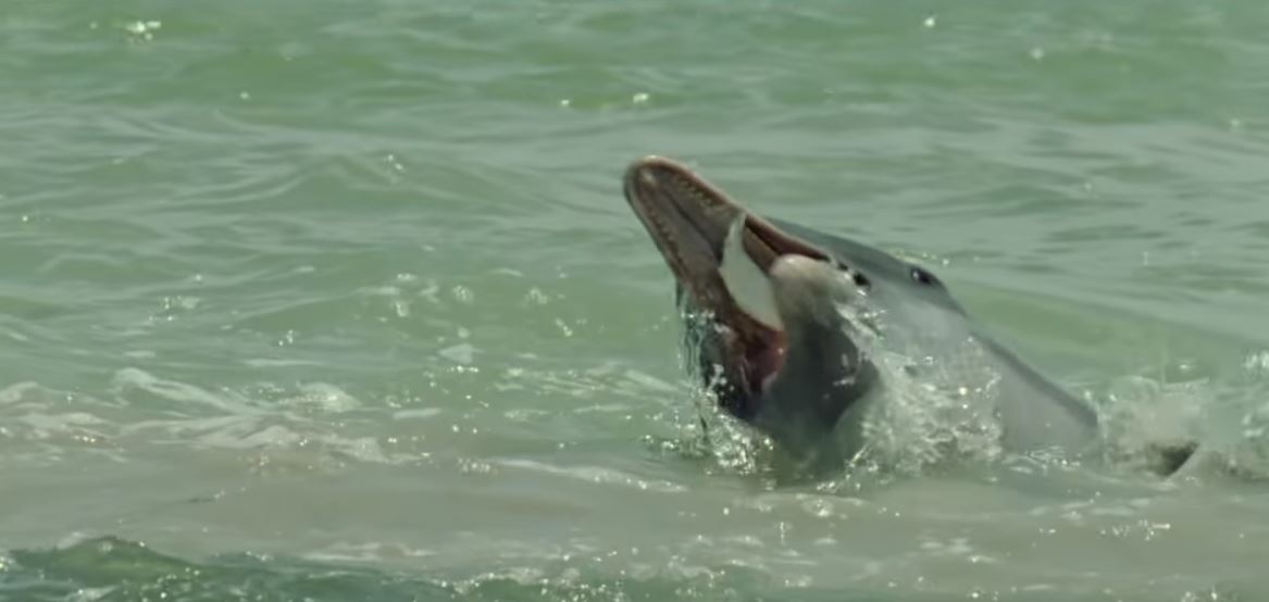 這隻海豚不斷用尾巴拍打海底 直到掀起砂石才發現他們太聰明