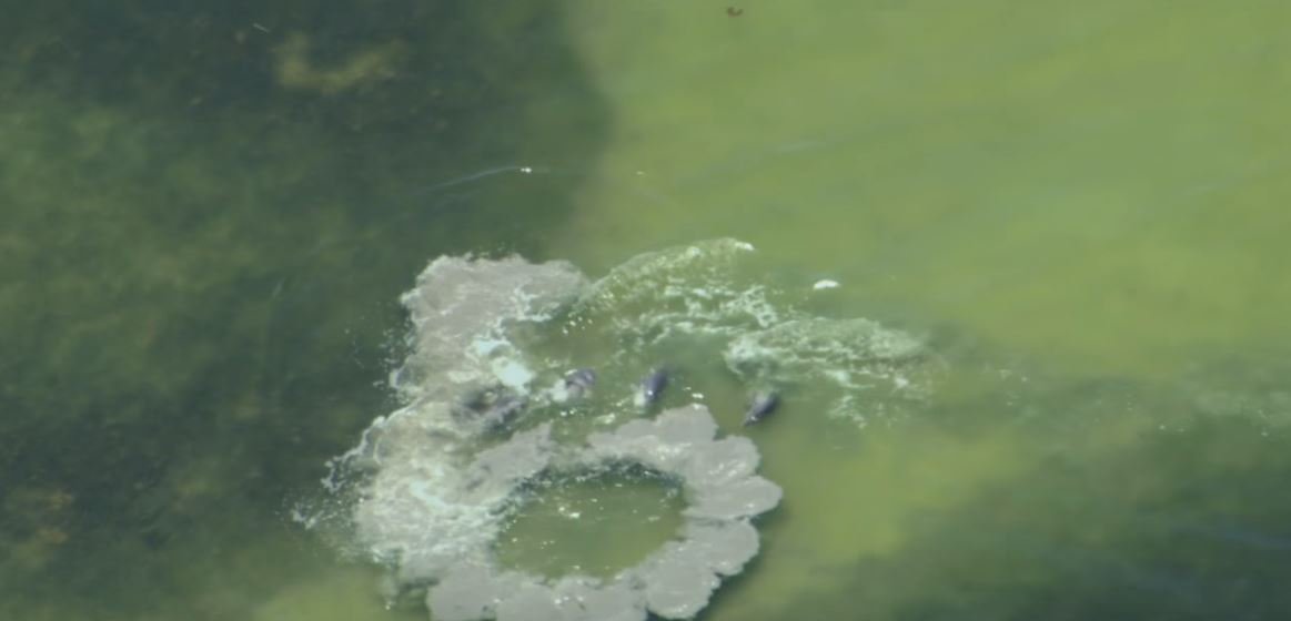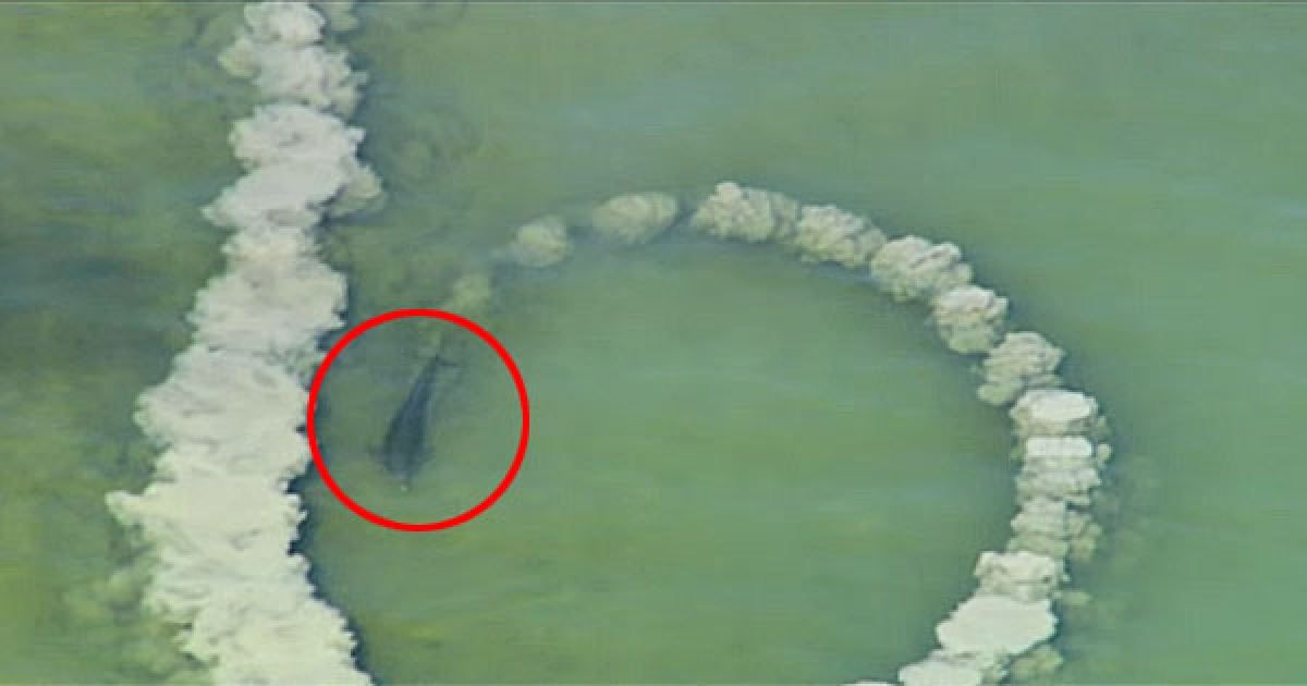 ▼等到圈圈完成之後,其他的海豚一擁而上,開始往圈圈裡跑。圈圈裡面有什麼呢?