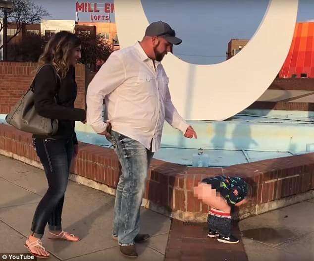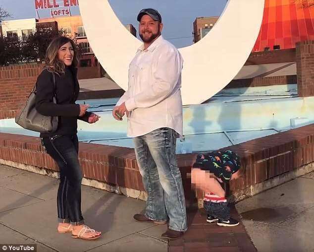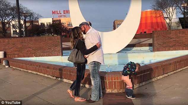 ▼當凱文在水池旁邊對艾麗莎深情告白並跪下求婚時,艾麗莎的3歲兒子歐文(Oven)突然從水池旁跳下,當場脫下褲子尿尿,讓這段浪漫的求婚影片變成了搞笑片。