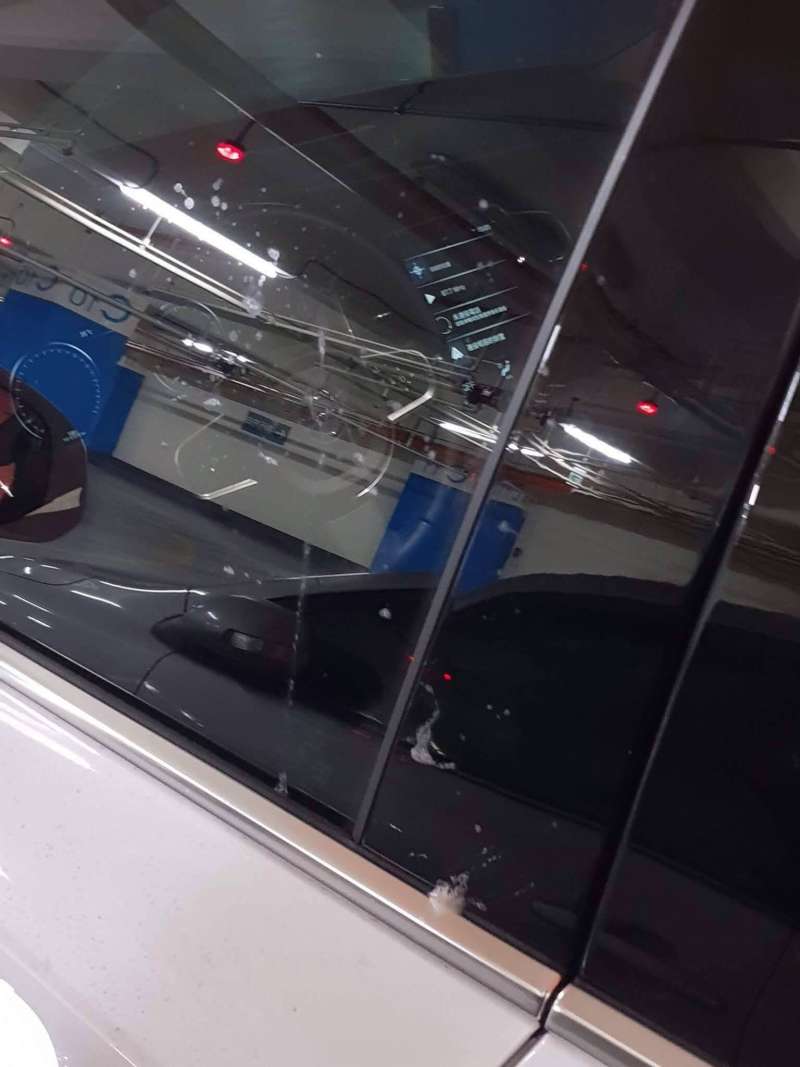 ▼5分鐘後原po因為忘記帶小孩的外套所以回到車上去拿,赫然發現車窗和車門都被吐滿了口水。當時原po馬上打110報警通知貨車司機,當時對方一口否認還一副嘻嘻哈哈的態度,結果當原po調閱了百貨公司停車場的監視器之後,貨車司機只好承認是他做的。