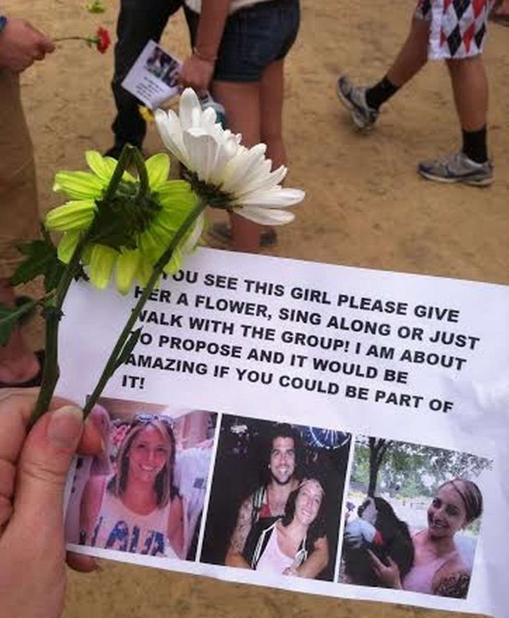 2018年05月19日一個年輕女生參加了音樂節,前往會場期間有很多陌生人不斷送花給她,令她感到很奇怪,而且送完花給她的陌生人都沒有離開,反而跟著她,人群慢慢開始聚集起來,分散了她的注意力,她回頭一看,突然發現一個單膝下跪的男人,這男人是她的男友-約翰費雷拉。
