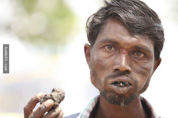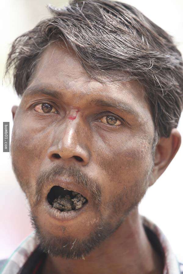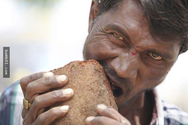 ▼30歲的Pakkirappa沉溺於吃磚頭、灰塵、泥土和石頭。