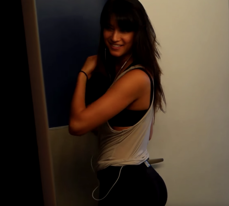 ▼她穿上緊身的瑜伽褲子,並在背後安裝了隱藏攝影機,想看看有沒有偷看自己,沒想到大部分人都在看……
